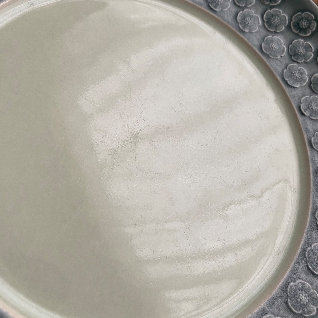 器のリム全体に小さなお花が敷き詰められデザインは、