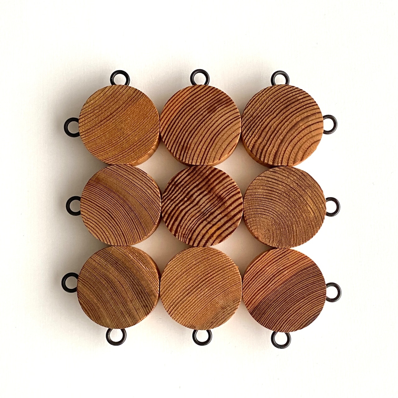 丸くくり抜かれた9つの木が、