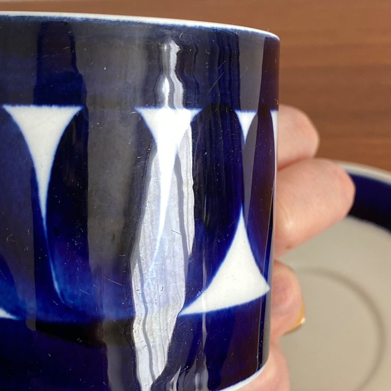 カップ内側と表面、ソーサー表面に